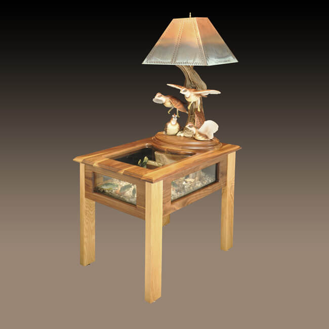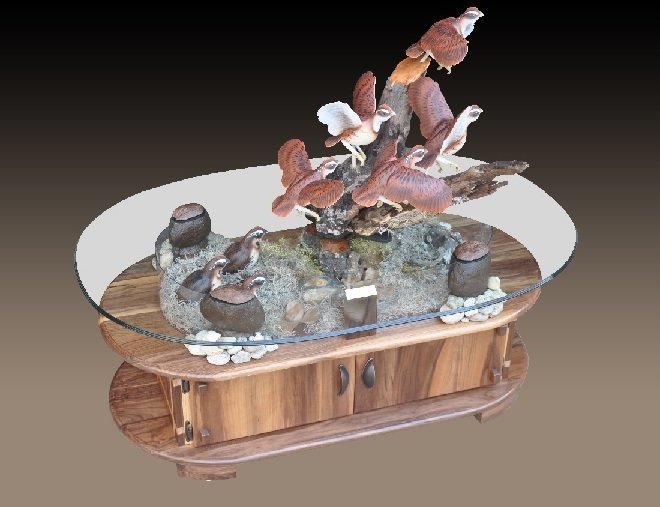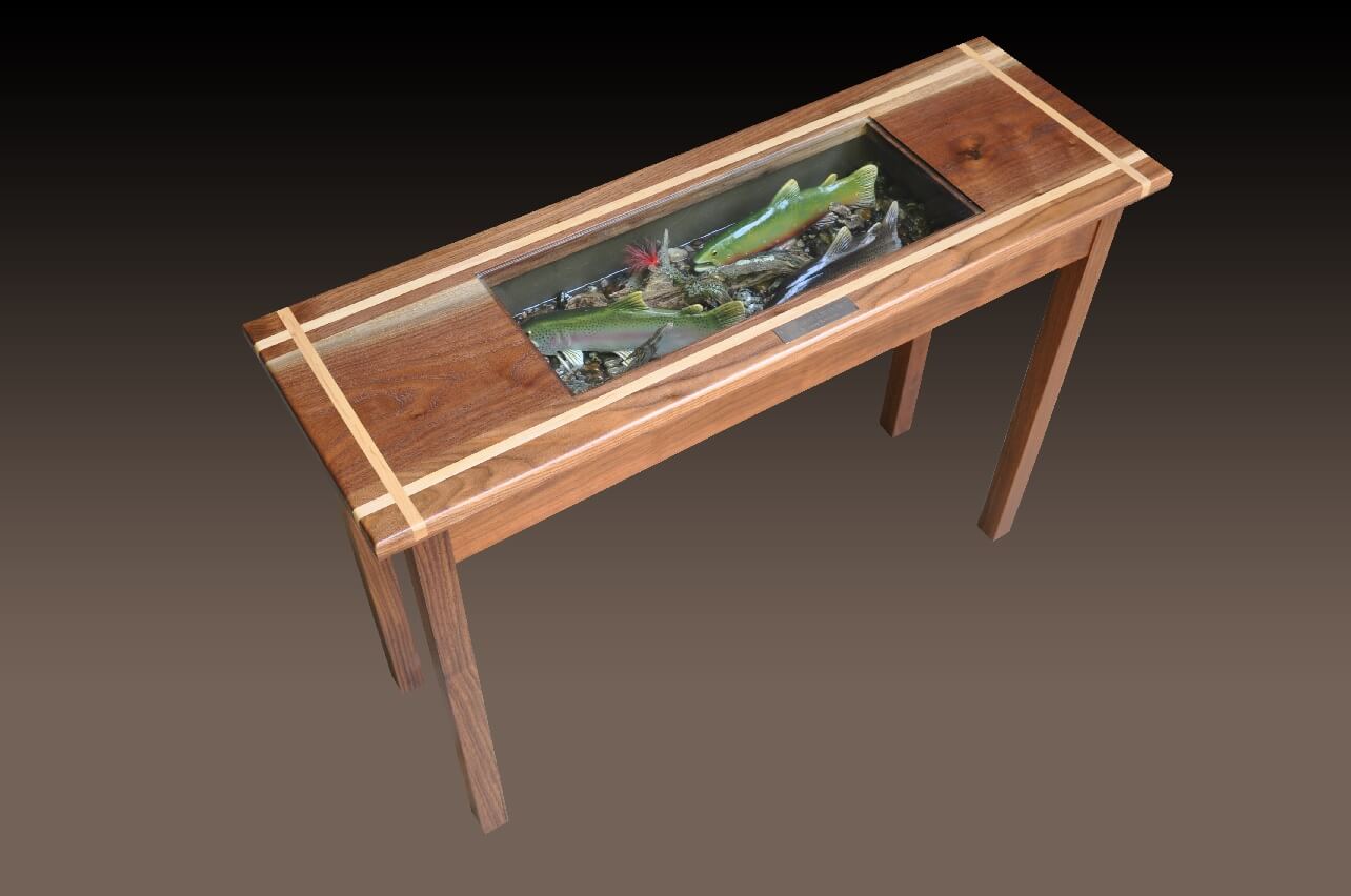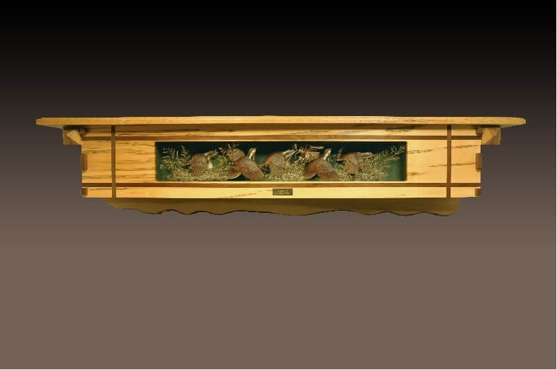 Standard woods we work with are Black Cherry, Black Walnut, Red Cedar, Wormy (Ambrosia) Maple, Southern Red Oak, White Oak and Holly.  Inlays are also included, normally these will have color characteristics which are in contrast to the primary wood, such as Black Walnut with Holly inlays.